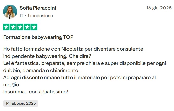 🎓 Riceverai un Attestato di Partecipazione che certifica la tua formazione come Consulente Babywearing Indipendente – Livello Base.
